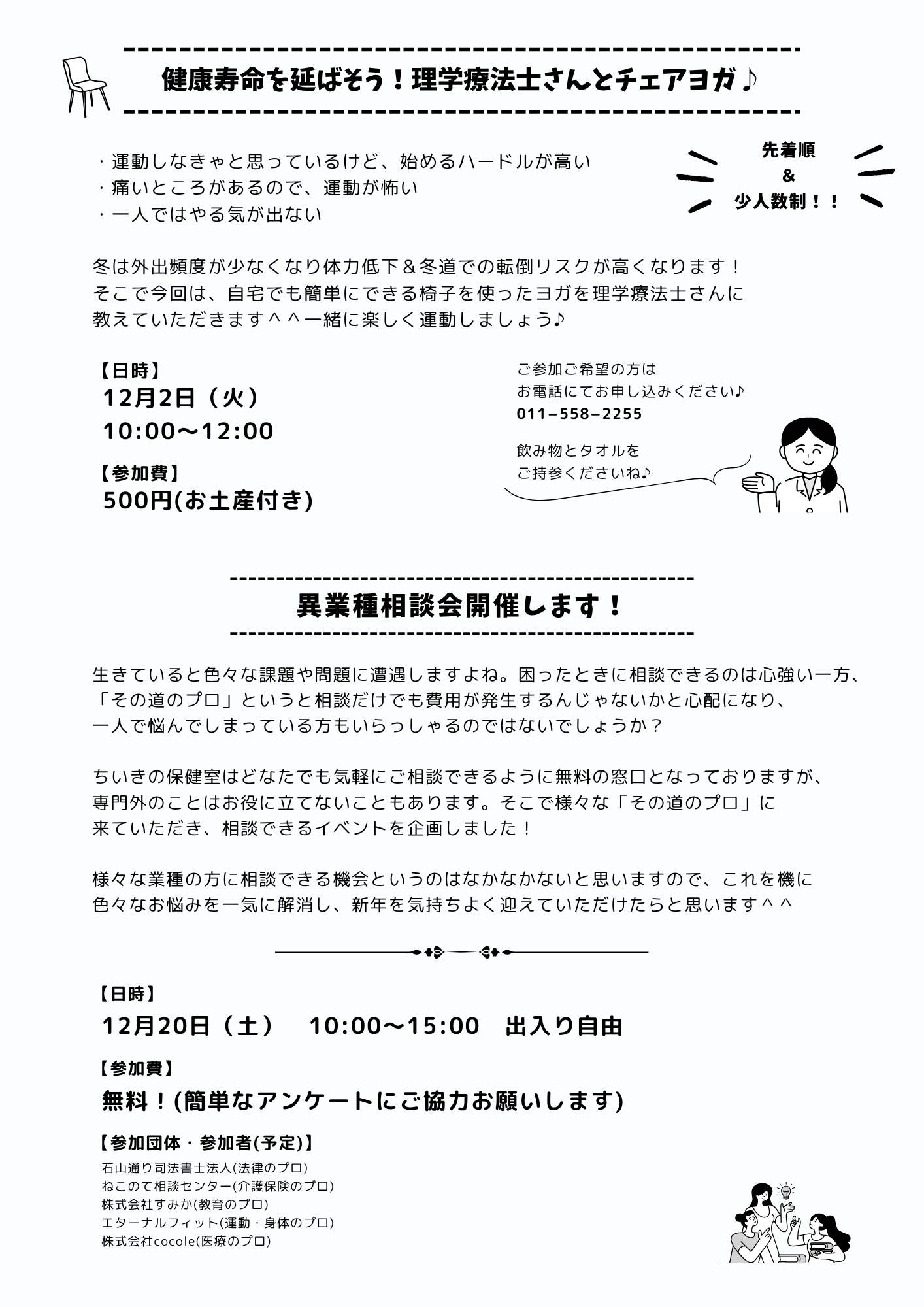 いつも「ちいきの保健室」をご利用いただきありがとうございます。